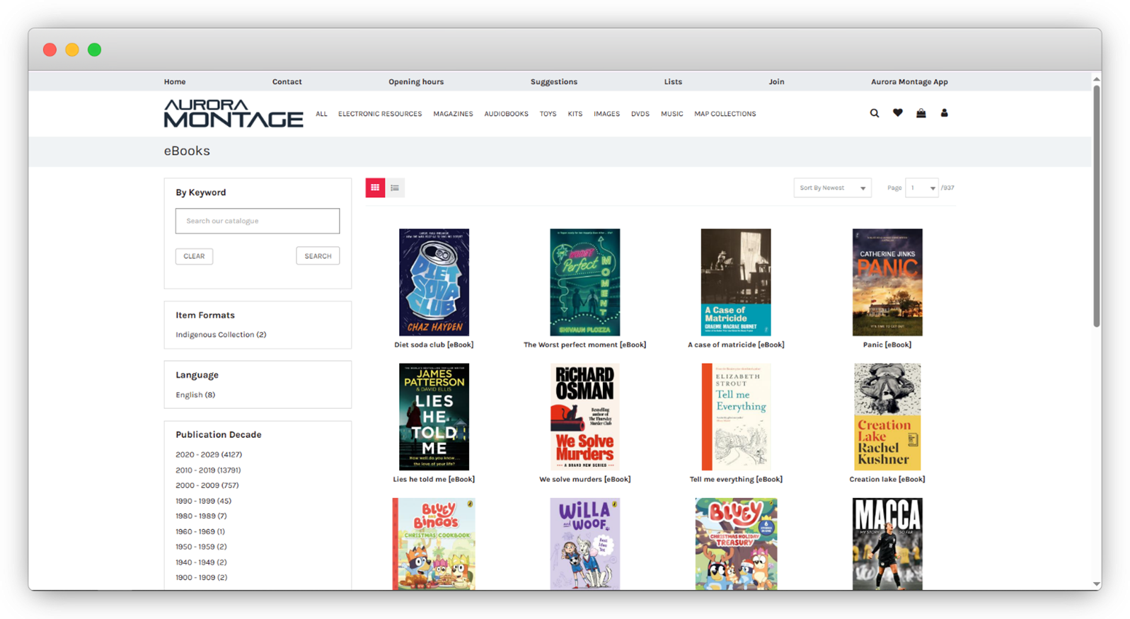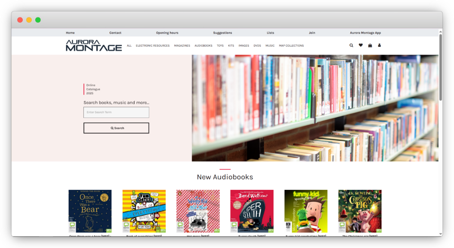 Aurora Montage is a modern, fully integrated public catalogue and discovery layer that transforms how users interact with your library collection. Together with Aurora Astria, it forms the Aurora suite. From books and eBooks to toys, tools, images, and music – Aurora Montage brings everything together in one beautiful, intuitive experience.