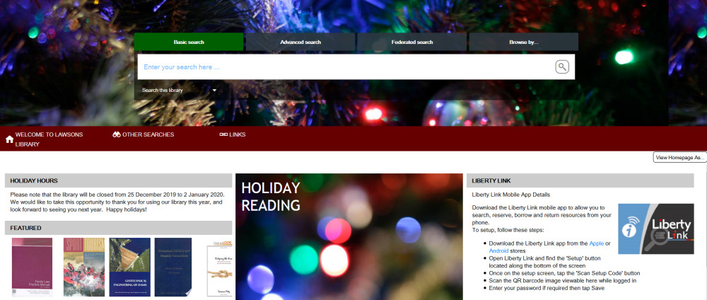 Changing the banner image of your Liberty system can make a major difference to how your Liberty Home screen looks to your borrowers. If you want to set a different mood for your Home screen, consider changing the banner to something with a holiday theme. You can also use the Interface Setup Wizard to change the colour scheme.